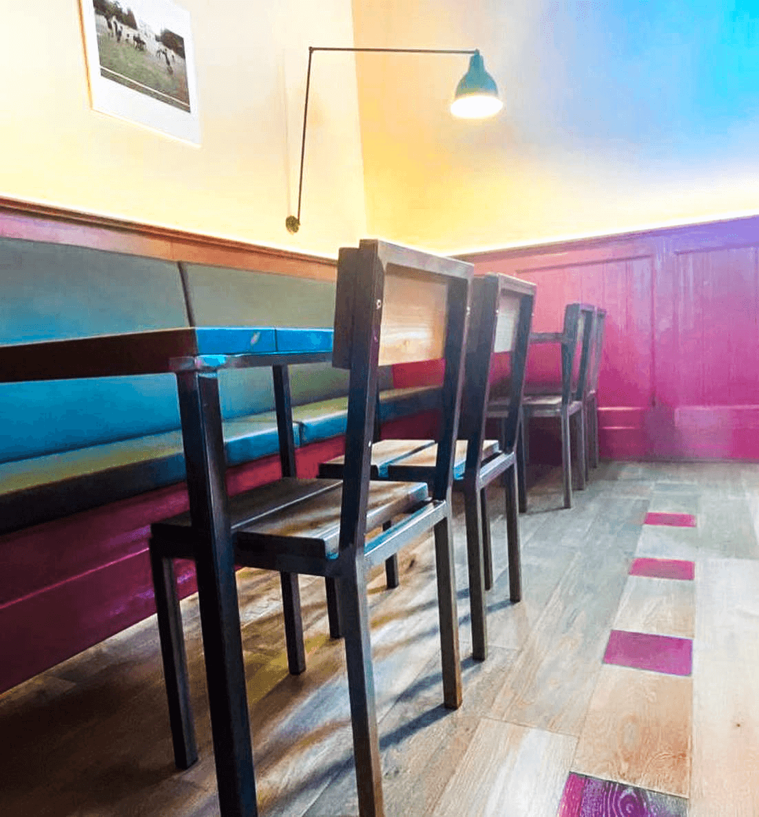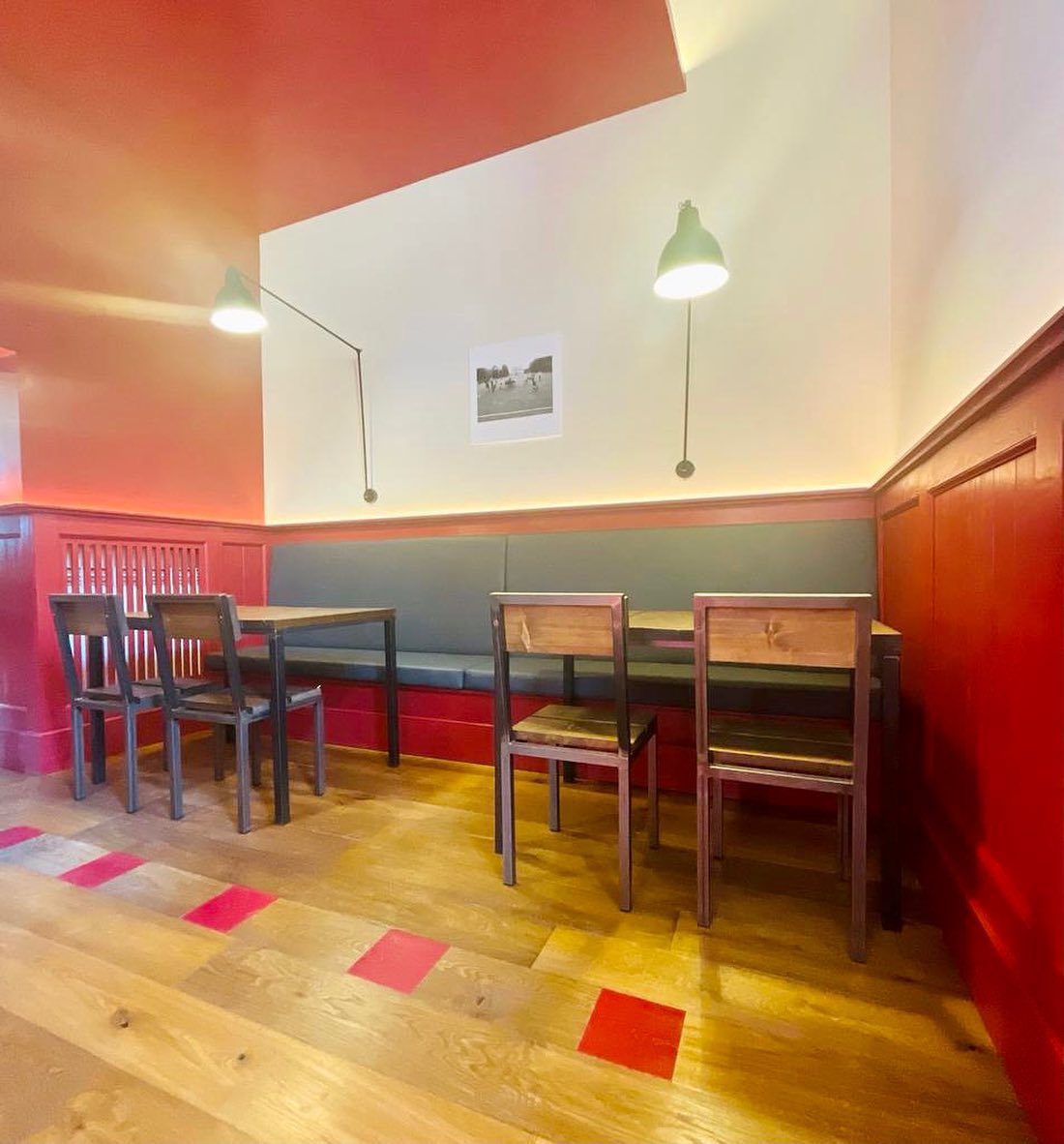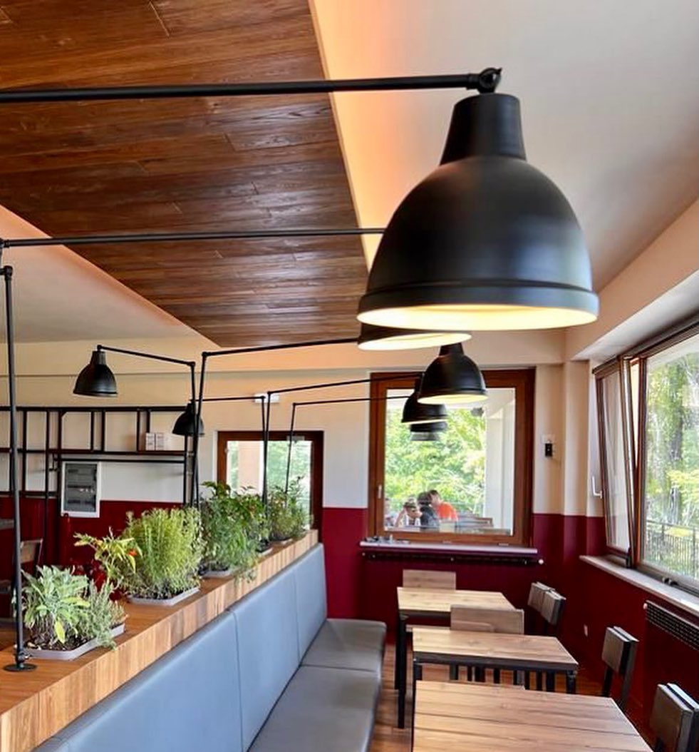 The environment is characterised by a strong visual impact thanks to the contrast between the planked Oak wood panelling, the Smoked colour of the Essere collection, and the intense red of the walls. The design enhances the brand identity through customised solutions, with essential furniture, clean lines and bold graphic details. The seating, table layout and the use of aromatic herbs as decorative elements reinforce the feeling of authenticity and cosiness, making the restaurant a reference point for an identifiably modern dining experience.