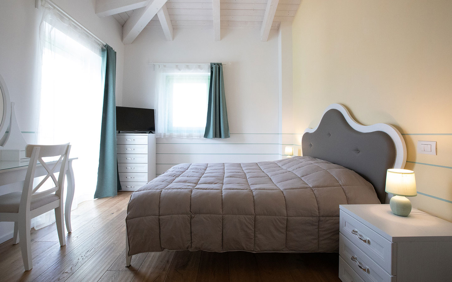 The rooms and common areas are characterised by a sober and cosy style, enhanced by the 'Thermo Piceno' oak parquet flooring from the Energia collection.