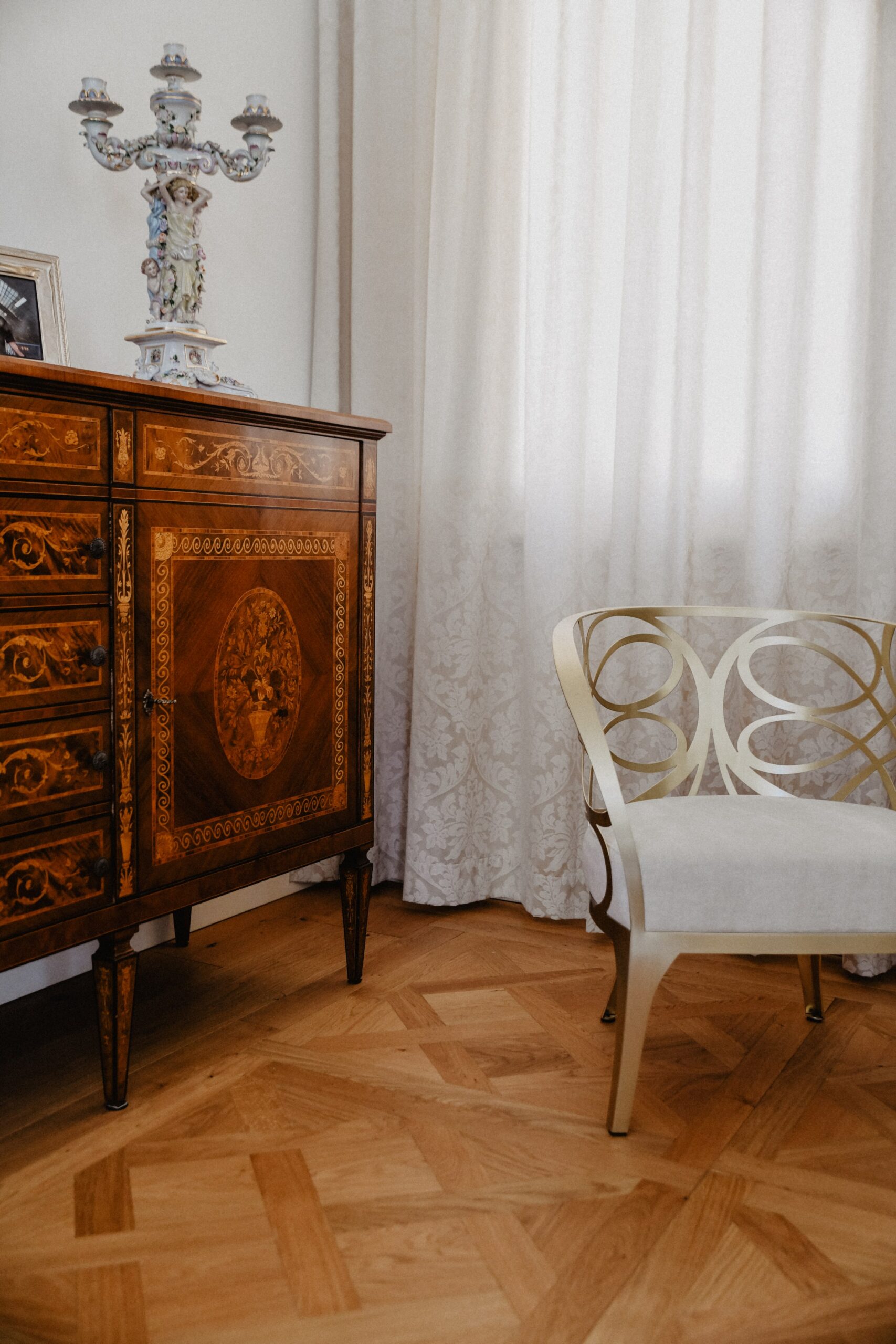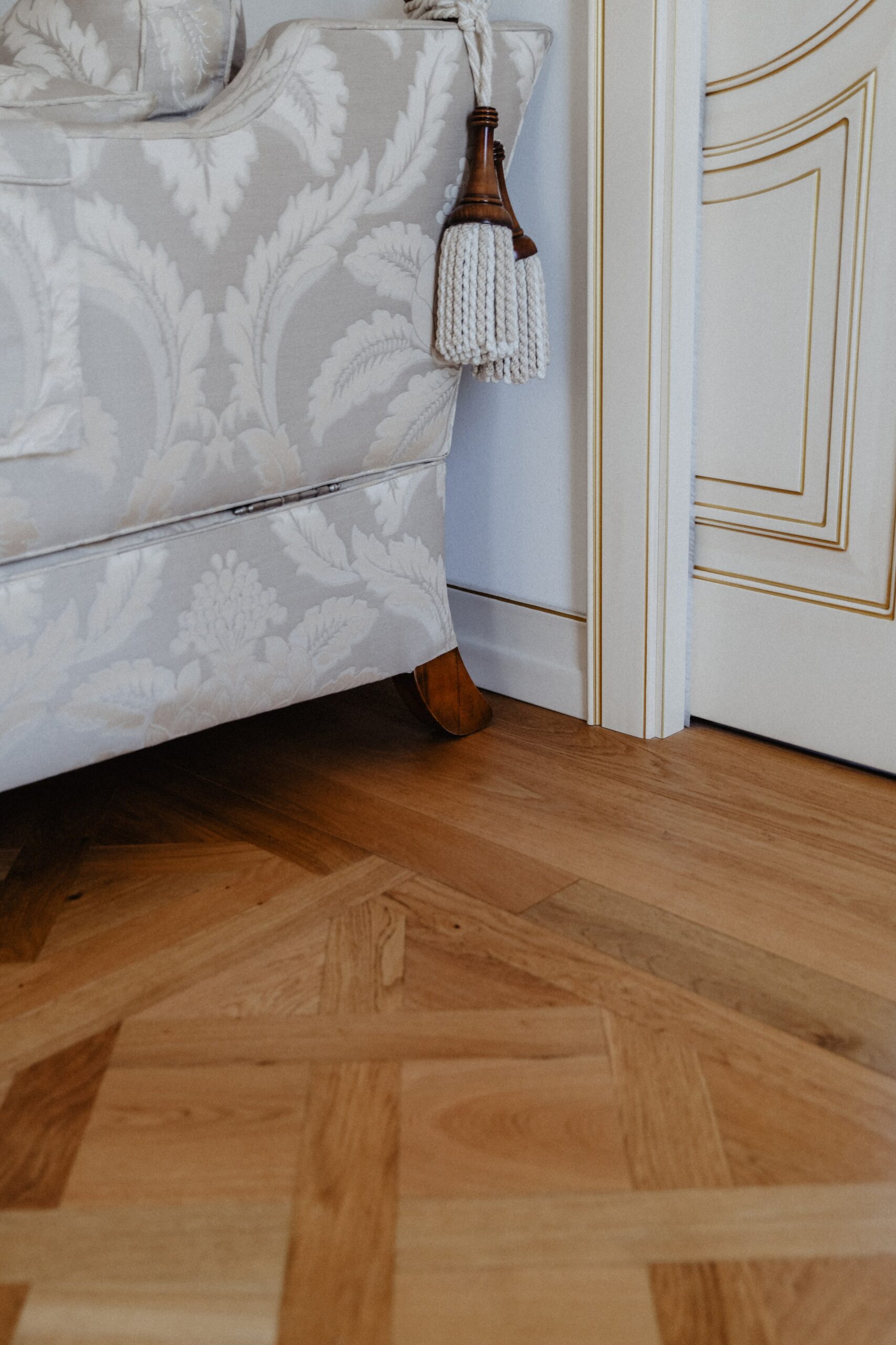 Un ambiente elegante dove il design classico incontra dettagli contemporanei. Il pavimento in rovere posato a mosaico dona carattere agli spazi, esaltando la luce naturale e dialogando armoniosamente con gli arredi dallo stile ricercato. Un progetto che celebra l’equilibrio tra raffinatezza e comfort quotidiano.